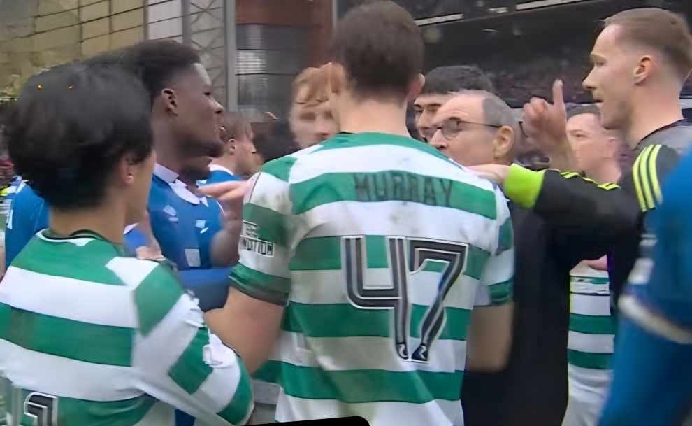Hoops manager Martin O’Neill sprinted onto the field to help defuse the situation, while referee John Beaton managed to restore order swiftly.