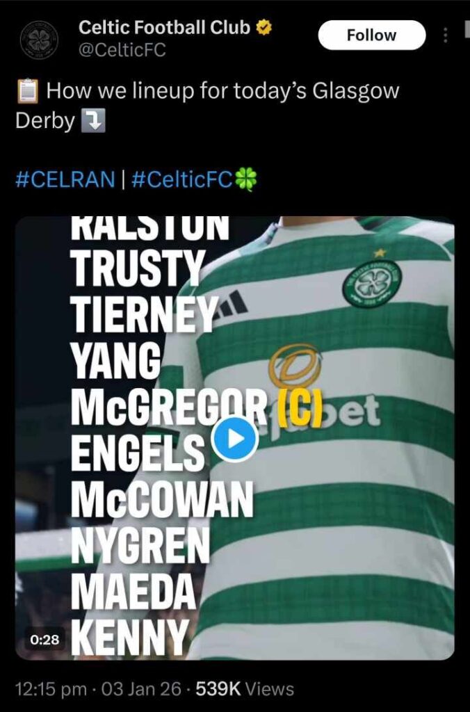 Celtic announce starting XI vs Rangers promoting EA Sports FC26: