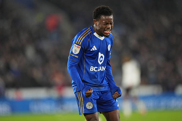 Leicester City’s Abdul Fatawu reacts after a foul is giving against them during the Sky Bet Championship match at the King Power Stadium, Leicester. Picture date: Monday December 29, 2025. (Photo by Joe Giddens/PA Images via Getty Images)