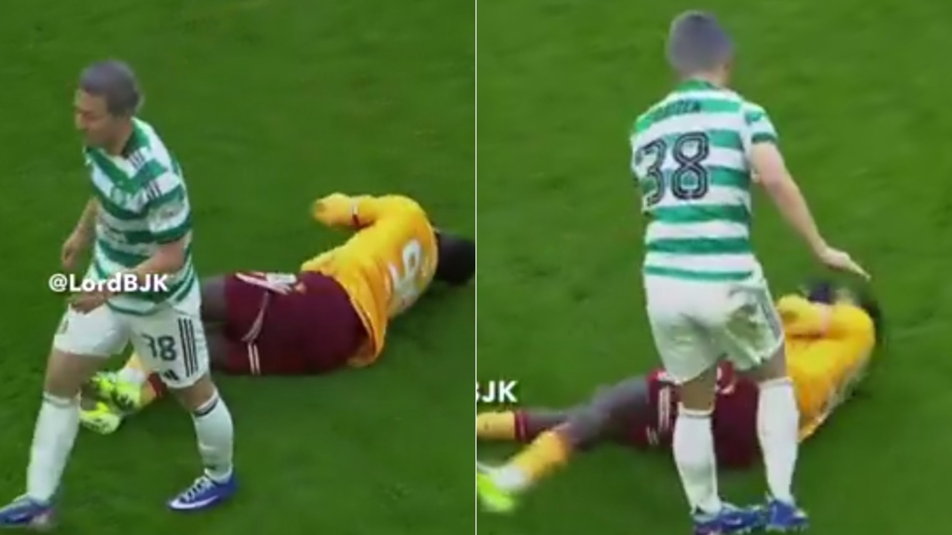 The 13-second footage, which has quickly gone viral across social media, appears to show the Celtic forward making contact with a Motherwell player’s face with his elbow during a fast-moving passage of play in the Scottish Premiership clash.