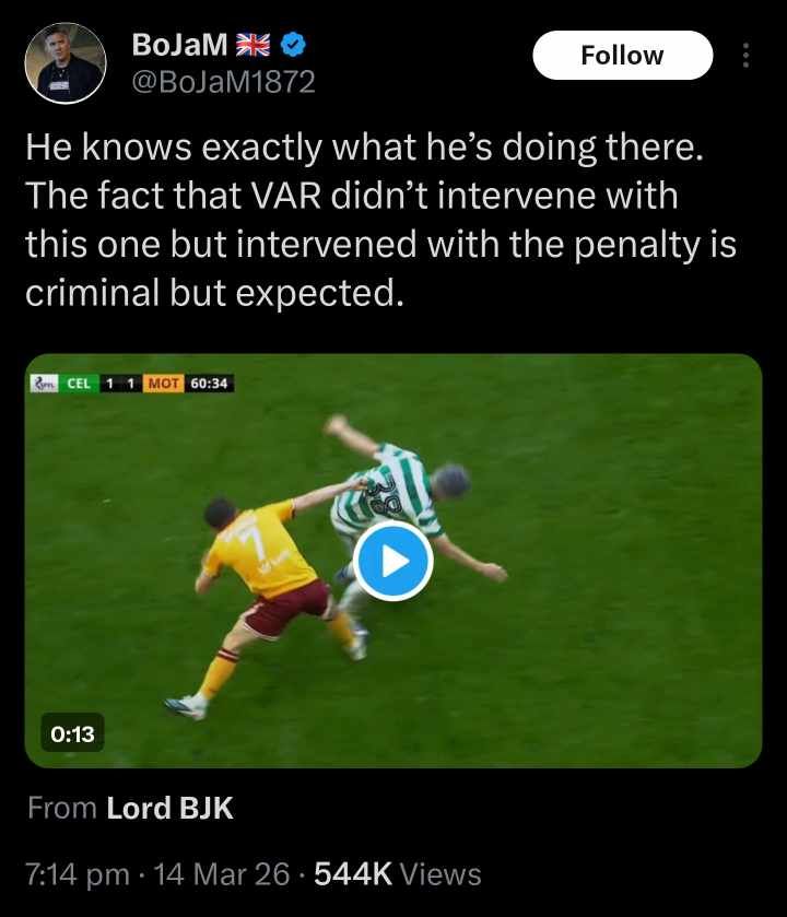Many fans pointing out the incident have questioned how the technology was able to miss that moment entirely, especially when VAR later intervened decisively in the same match to award Celtic a penalty and issue a red card.